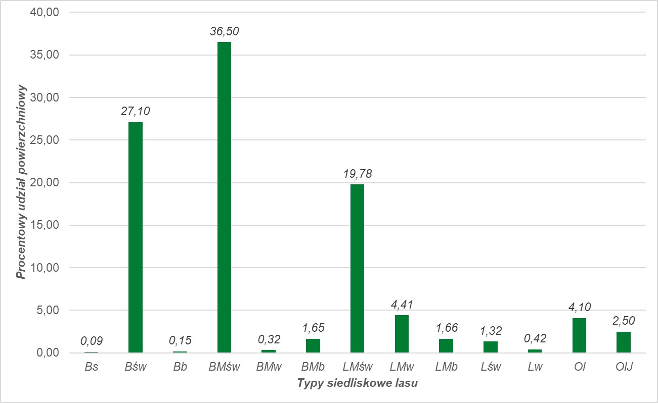 Udział typów siedliskowych lasu w Nadleśnictwie Jedwabno